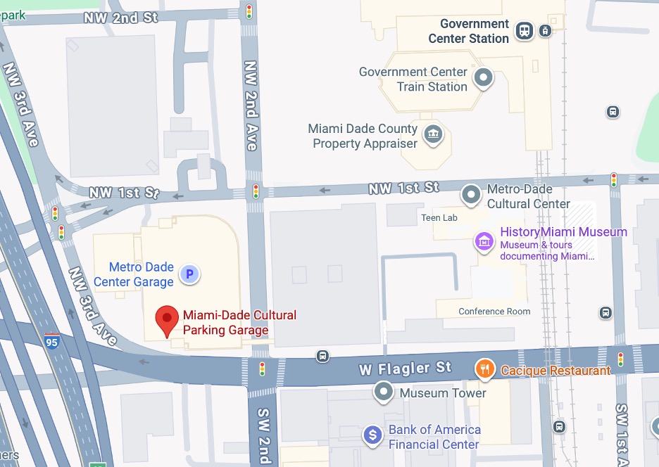 Garage InformationHistoryMiami Museum is located on the plaza level on the Miami-Dade Cultural Center across from the Miami Dade County Library. There are multiple ways you can enter the plaza level. You can take the stairwell to the plaza level located on Flagler Street across from, a ramp near the corner of Flagler and NW 1st Avenue, or the stairs located on NW 1st street across from the Government Center.